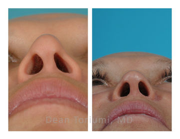 A significant portion of Dr. Toriumi's practice is devoted to revision rhinoplasty (correcting problems from a previous rhinoplasty). Revision rhinoplasty is needed when a primary rhinoplasty does not adequately resolve cosmetic or functional issues, or when specific imbalances arise post-surgery or worsen. If the nose, for example, is not in balance with other facial features due to problems from previous surgery or unanticipated issues associated with poor healing, revision rhinoplasty may be indicated. With the typical reductive rhinoplasty techniques, is not unusual for the patient to have an improvement in the appearance of their nose early postoperative and then deform over time. Dr. Toriumi's structure techniques are designed to provide a good long-term outcome. The patient must understand that their nose will look swollen and possibly wider early on, only to improve with time.